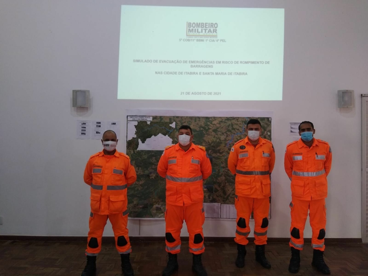 No último sábado (21), militares do 11º Batalhão de Bombeiros Militar (11°BBM) participaram do simulado de evacuação de emergência em risco de rompimento de barragem nos municípios de Itabira e Santa Maria de Itabira.