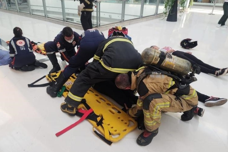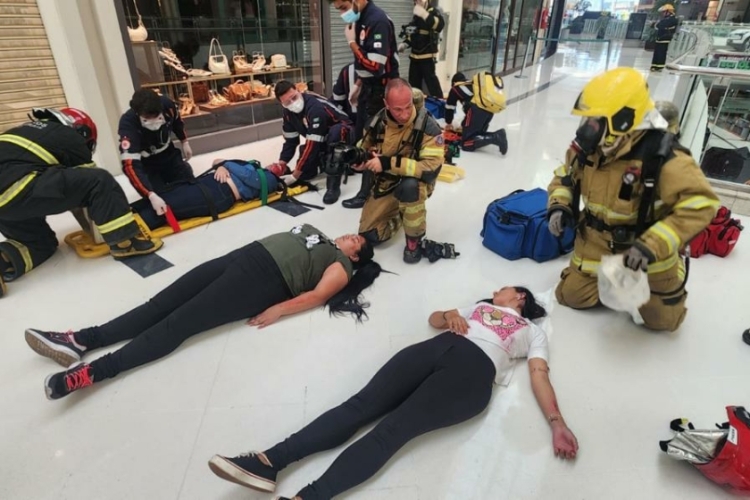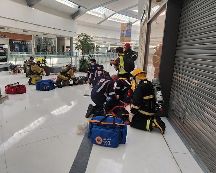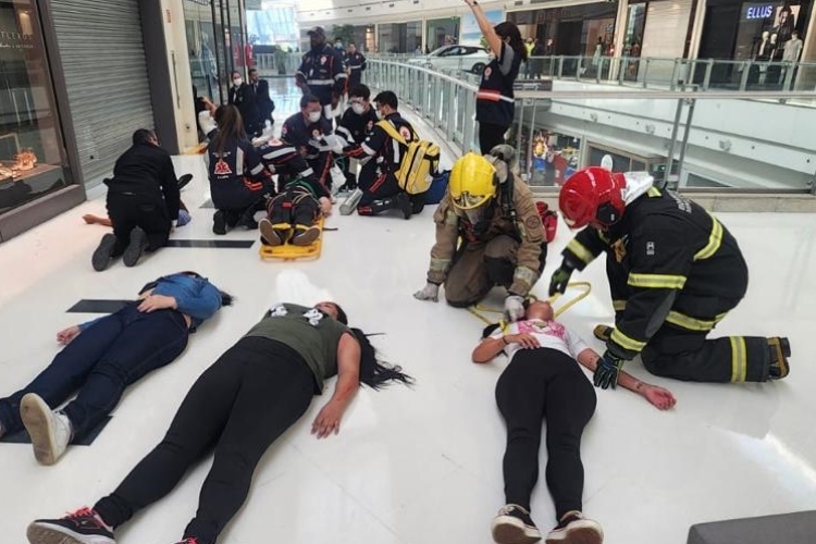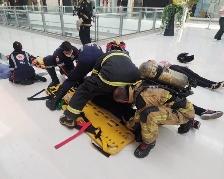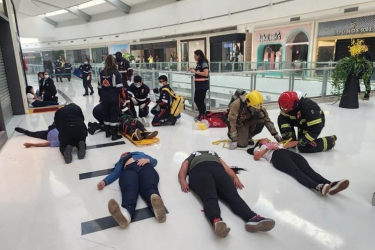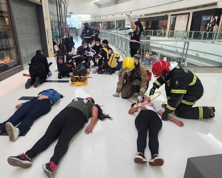 Hoje (17), foi realizada uma simulação de explosão em uma loja no interior do shopping Independência em Juiz de Fora. O exercício envolveu múltiplas vítimas, tanto dentro das lojas quanto em outras áreas do shopping.