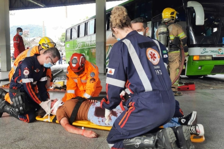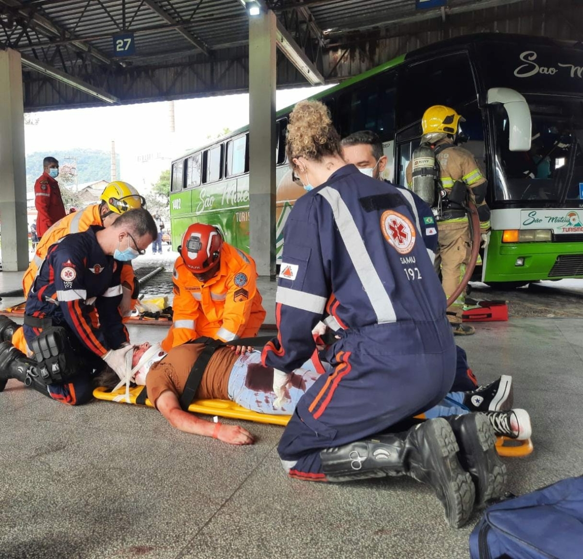 O 4º Batalhão de Bombeiros Militar (4º BBM), em parceria com o SAMU - CISDESTE, o Sindicato dos Enfermeiros de Minas Gerais, o Conselho Regional de Enfermagem de Minas Gerais e a Prefeitura de Juiz de Fora, realizou um exercício simulado no Terminal Rodoviário durante a manhã desta quarta-feira (10). O simulado teve como objetivo promover o treinamento e a qualificação contínua, além de comemorar a Semana da Enfermagem e a Operação Maio Amarelo.