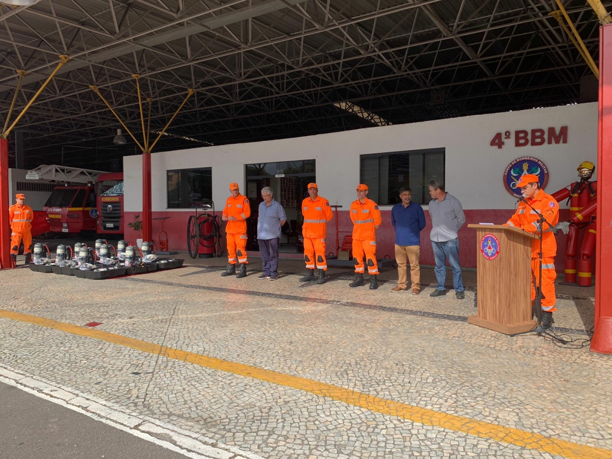 A manhã̃ desta sexta-feira (19), foi marcada pela solenidade de entrega de nove Equipamentos Autônomos de Proteção Respiratória (EAPR) para o 4º Batalhão de Bombeiros Militar (4º BBM) em Juiz de Fora. Equipamentos estes recebidos através de emenda parlamentar destinada pelo ex-deputado federal subtenente Gonzaga.