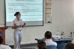 Ainda durante o encontro, a major QOS Vanessa, chefe da SAS da ABM, apresentou a seção de saúde da unidade aos participantes.