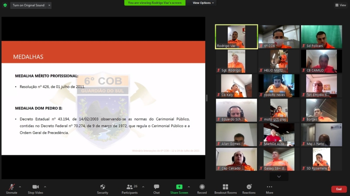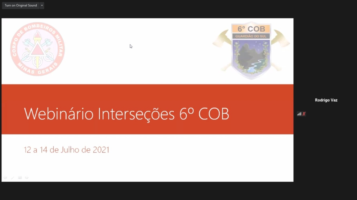Entre os dias 12 a 14 de julho de 2021, o 6° Comando Operacional de Bombeiros (6°COB) realizou o 1° Webnário Interseções da unidade, em comemoração ao dia 02 de julho – Dia Nacional do Bombeiro.