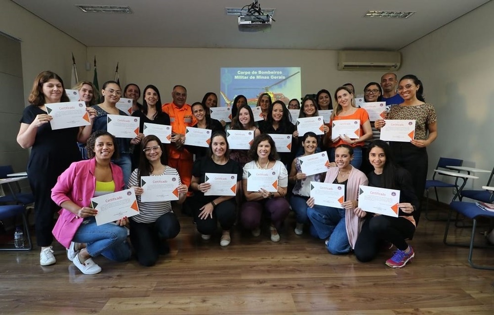 Ao final da instrução, todos os profissionais receberam do palestrante, Tenente Ailton Alves da Silva, o certificado de conclusão emitido pelo Corpo de Bombeiros Militar de Minas Gerais (CBMMG).