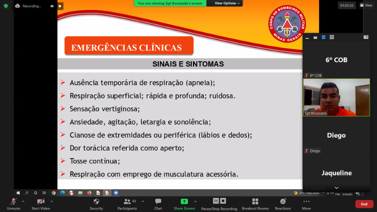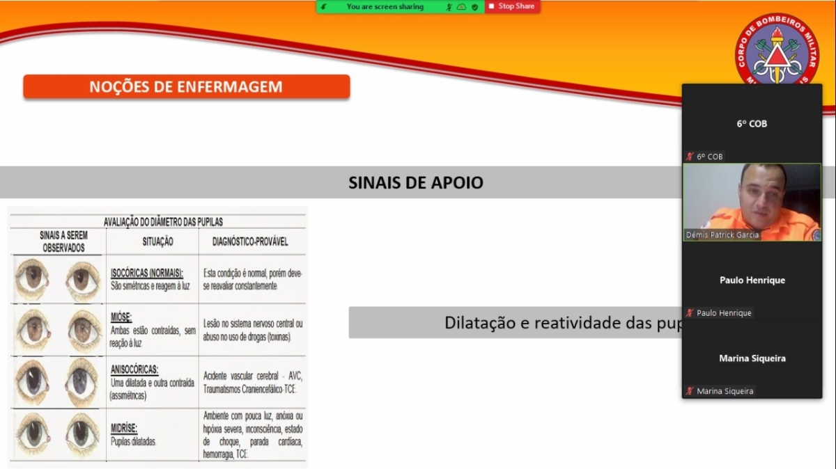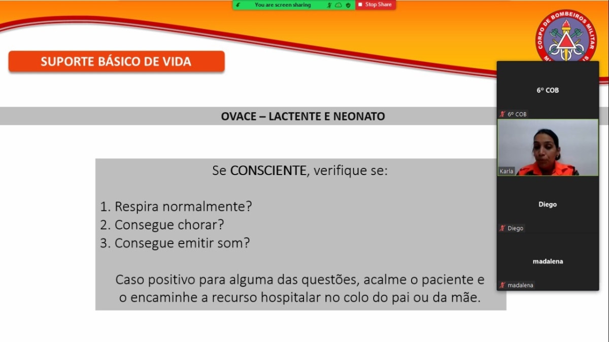 Nos meses de setembro e outubro do corrente ano, o 6º Comando Operacional de Bombeiros Militar (6ºCOB) realizou o 1º Curso de Primeiros Socorros para a comunidade, no formato on-line, devido à situação atual de pandemia da Covid-19.