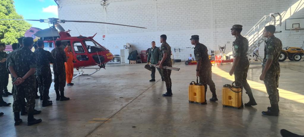 A 3ª Companhia Especializada de Operações Aereas foi responsável pelas instruções realacionadas a embarque e desembarque da aeronave com utilização de equipamentos de combate.