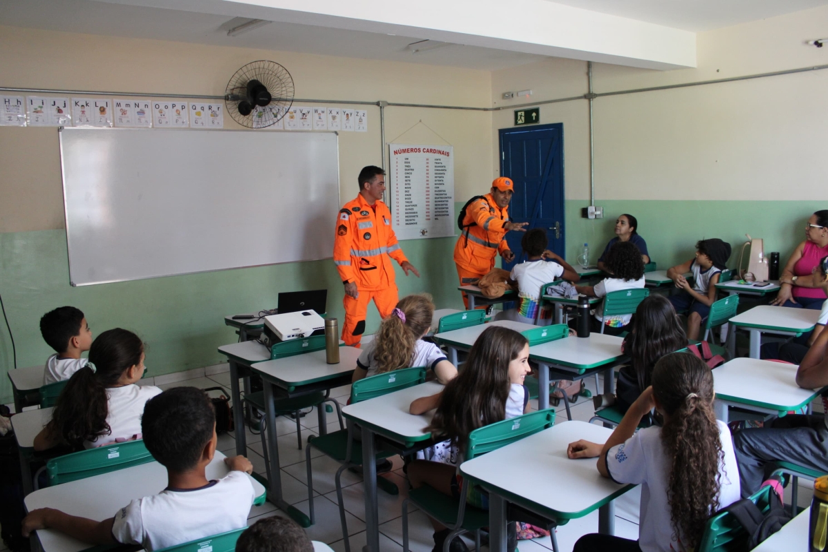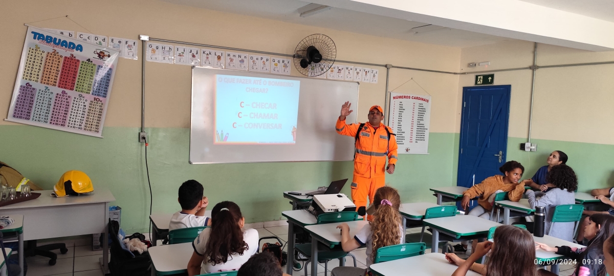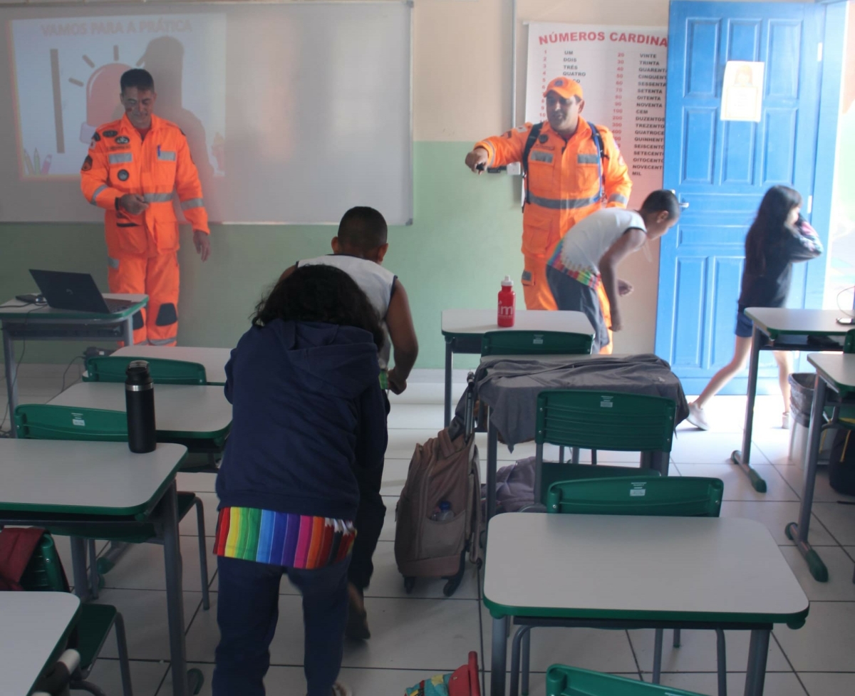 Os alunos do 4º ano do ensino fundamental receberam orientações sobre como evitar e agir em situações de acidentes domésticos, incêndios urbanos e afogamentos, além de aprenderem a acionar os órgãos públicos em casos de emergência. A segurança no trânsito também foi abordada, sensibilizando as crianças a orientarem seus pais sobre o cumprimento da legislação de trânsito, o que contribui para a redução de acidentes.
