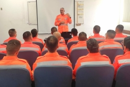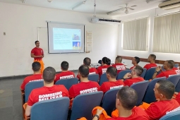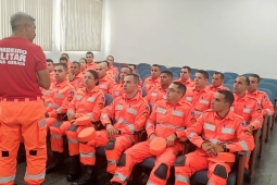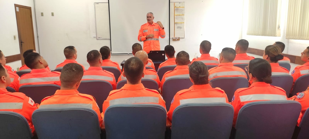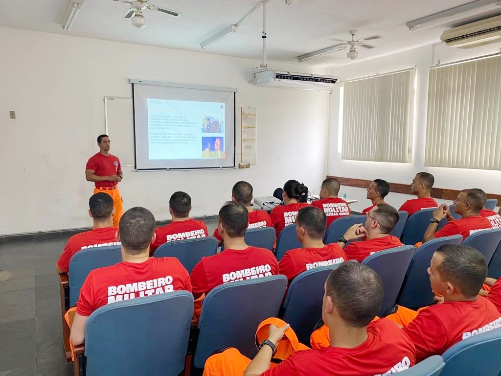 Na segunda parte da manhã, os discentes participaram do treinamento do Hino Nacional e assistiram a uma palestra do comandante-geral do CBMMG, coronel Erlon Dias Botelho do Nascimento, que apresentou o panorama geral da Instituição. Em seguida, o subcomandante da ABM, tenente-coronel Maycom Elias Alfim, deu as boas-vindas aos discentes da Academia.