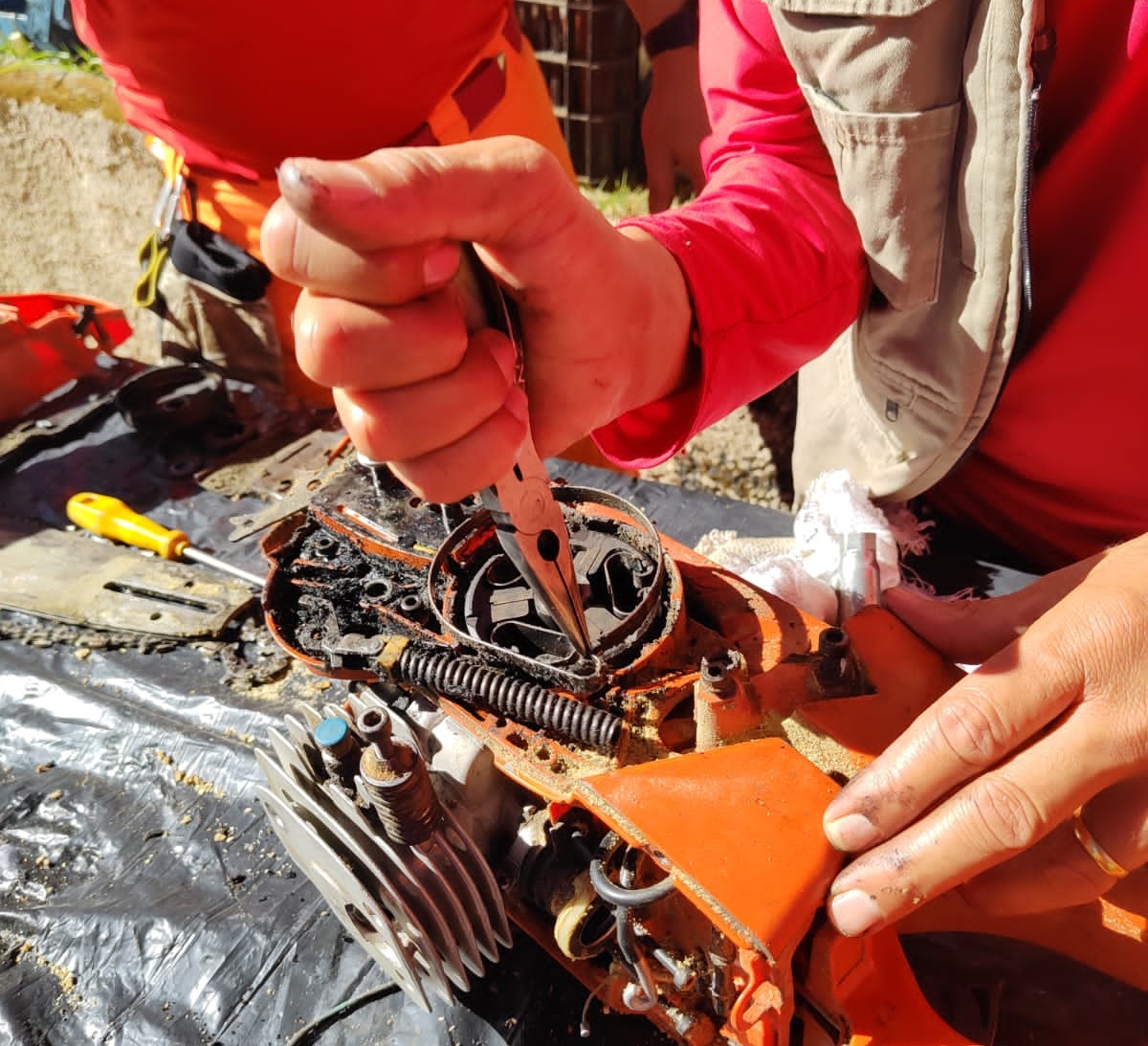 Durante o treinamento, os participantes aprenderam sobre os princípios básicos de operação, regulagem, afiação de lâminas, troca de peças e manutenção preventiva dos motosserras e roçadeiras. Além disso, também foram abordadas as questões de segurança, incluindo o uso adequado de equipamentos de proteção individual e medidas de prevenção de acidentes.