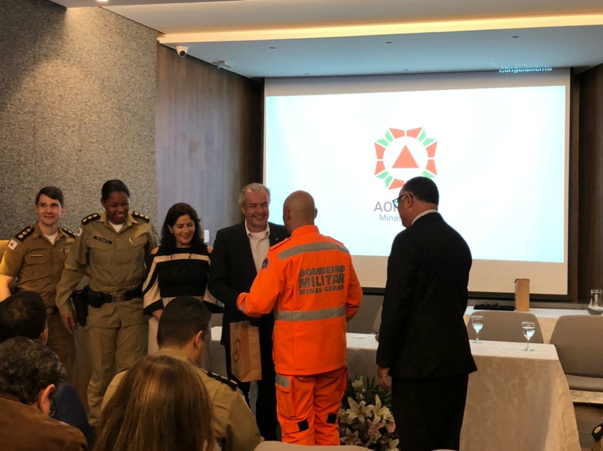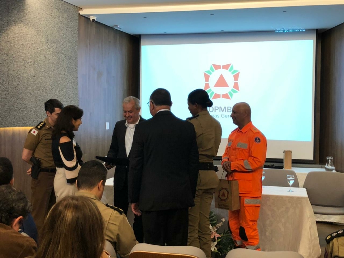 Na última quinta-feira (01), o CBMMG participou junto a Polícia Militar de Minas Gerais (PMMG), para a realização de um evento em homenagem aos presidentes da Associação Brasileira de Emissoras de Rádio e Televisão (ABERT) e da Associação Mineira de Rádio e Televisão (AMIRT), Flávio Lara Resende e Mayrinck Pinto de Aguiar Júnior, respectivamente. O evento foi realizado na Associação dos Oficiais da Polícia Militar e do Corpo de Bombeiros Militar de Minas Gerais (AOPMBM).