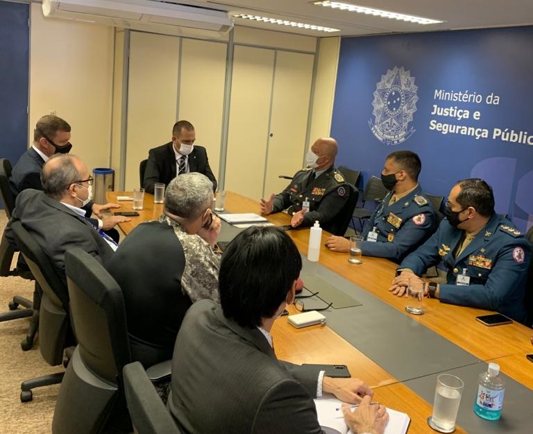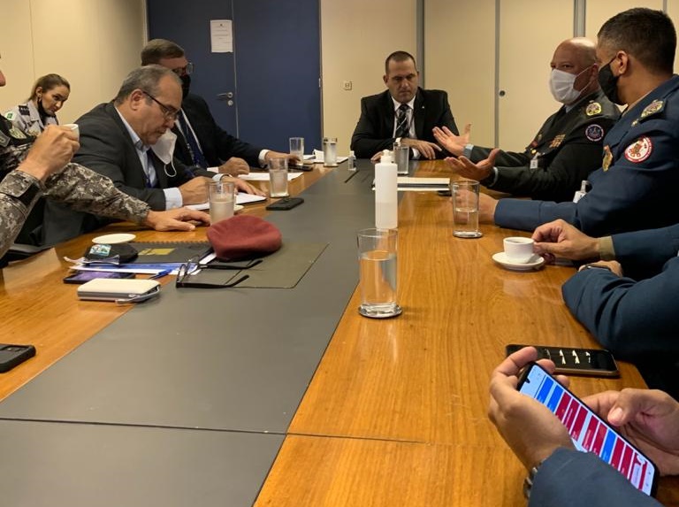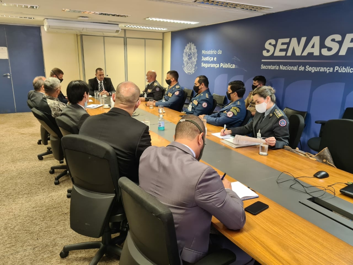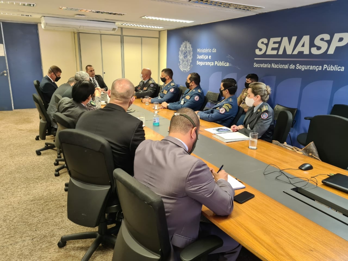 A reunião foi com o secretário nacional de Segurança Pública, coronel Paim, representantes da Secretaria de Operações Integradas – Seopi, integrantes da Força Nacional e da Ligabom, que foi representada pelo coronel Estevo e o vice-presidente, coronel Alessandro Borges, comandante do Corpo de Bombeiros Militar do Estado do Mato Grosso.
