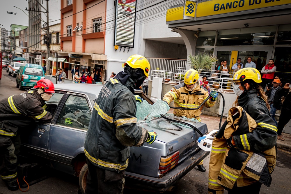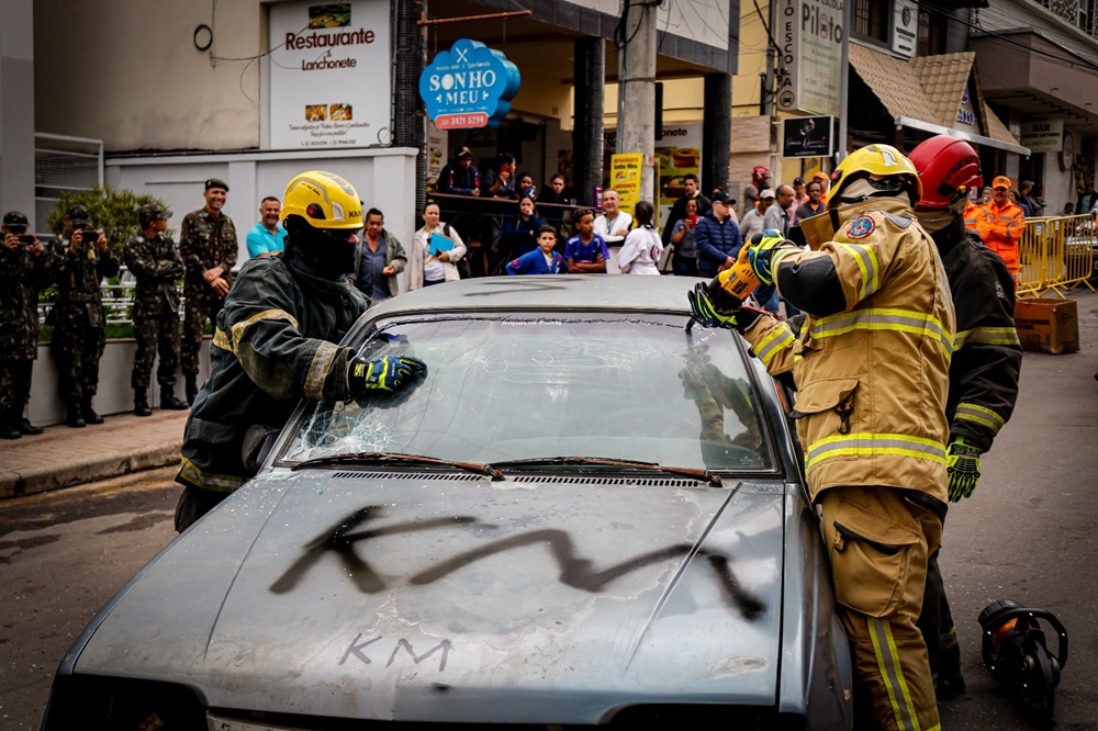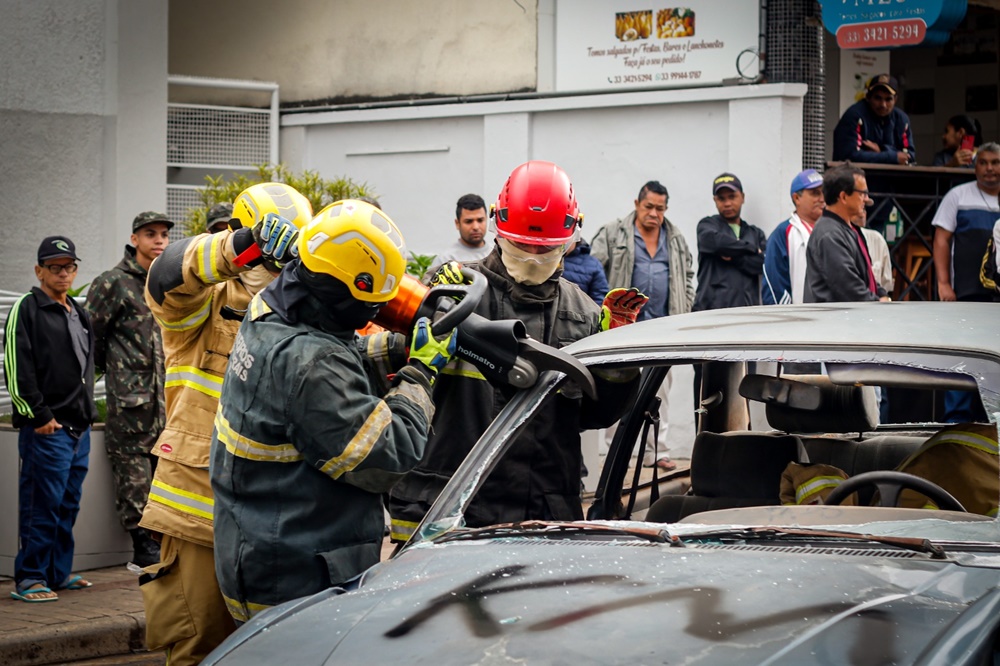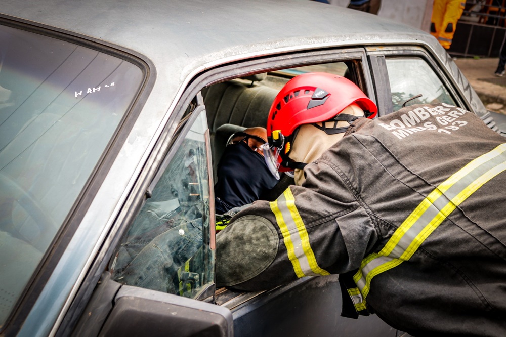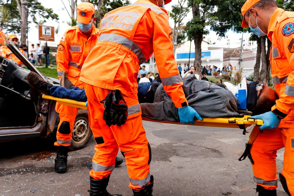 No simulado foi demonstrada a atuação do Corpo de Bombeiros Militar de Minas Gerais (CBMMG) diante de um acidente veicular com vítima encarcerada. Essa é uma ação de suma importância pois, promove a conscientização sobre a necessidade da direção defensiva, enfatizando ações que podem diminuir o número de acidentes.