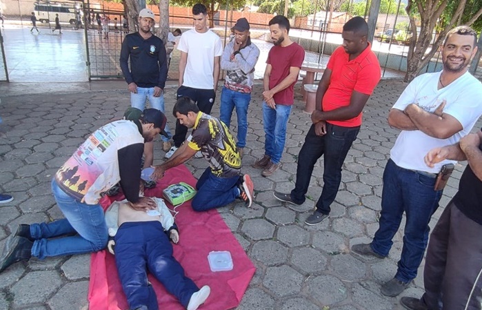 Também foram ministradas instruções sobre primeiros socorros, abordando os seguintes temas: parada cardiorrespiratória, obstrução de vias áreas (engasgo), ferimentos, acidentes com animais peçonhentos, mal clínico e lesões musculoesqueléticas.