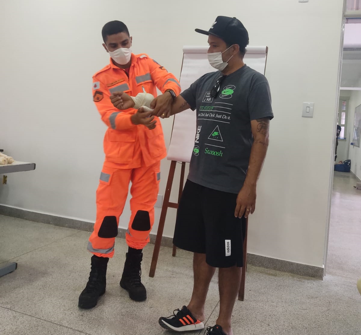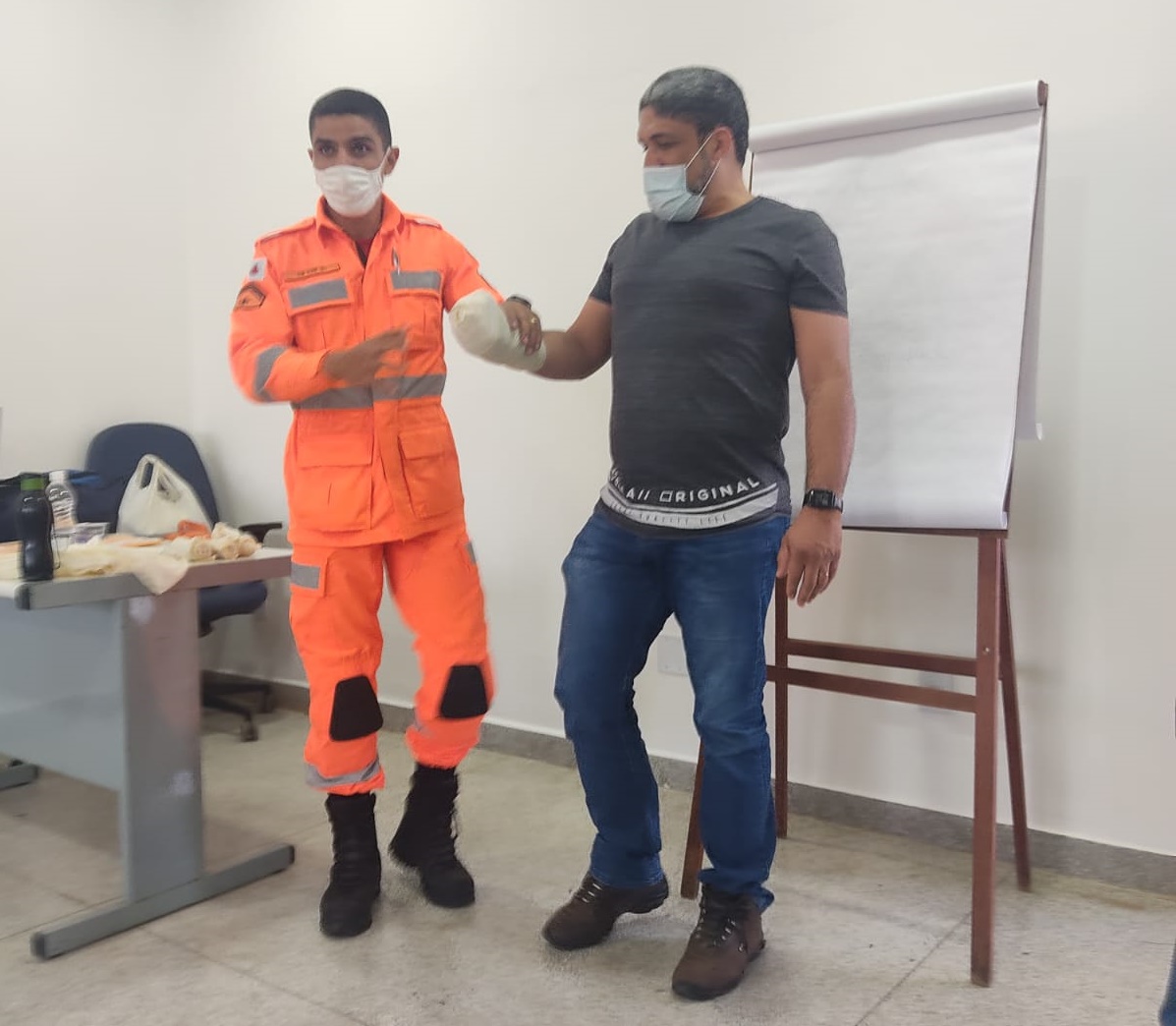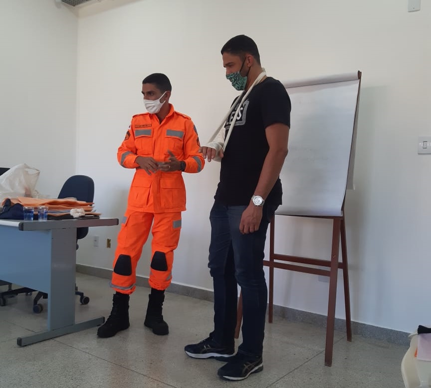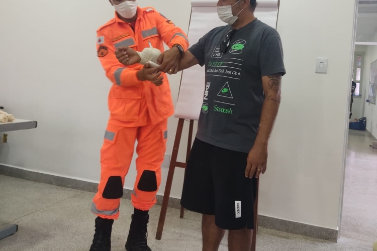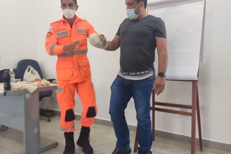 Foram repassados ainda, conhecimentos práticos sobre contenção de hemorragias e curativos para ferimentos, imobilização de fraturas, cuidados e ações em caso de acidentes com animais peçonhentos e avaliação das vítimas.