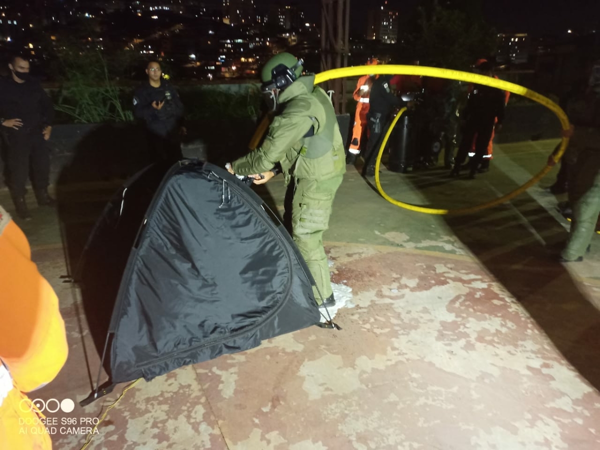 Os militares do Pelotão de Operações Químicas, Biológicas, Radiológicas e Nucleares (PQBRN), que pertence ao Batalhão de Emergências Ambientais e Resposta a Desastres (Bemad), figuraram como alunos do treinamento, que também contou com a presença de militares estagiários do Esquadrão Antibombas do Bope.