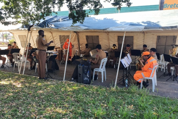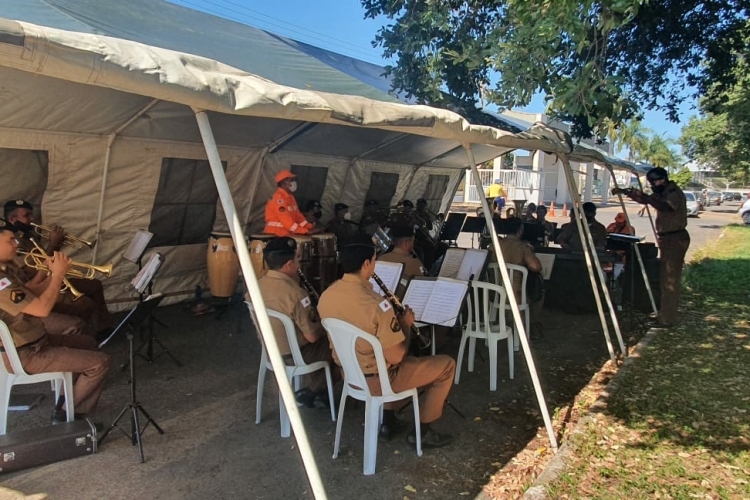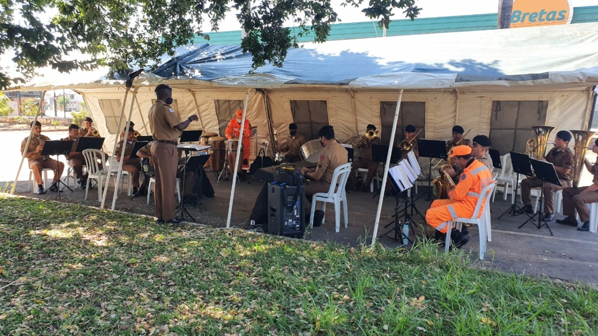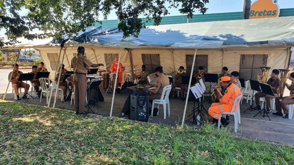 Os militares que neste primeiro dia compareceram para vacinar, foram recepcionados pela Banda de Música da 11ª RPM, que pela primeira vez, foi integrada por dois Bombeiros militares que também são músicos, numa demonstração de parceria entre as duas corporações coirmãs.