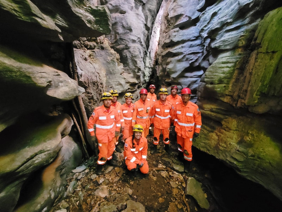 Durante os dois dias de atividades foram realizadas trilhas guiadas em meio à mata e no interior das grutas, e também um simulado de extração de uma possível vítima no ambiente cavernícola.