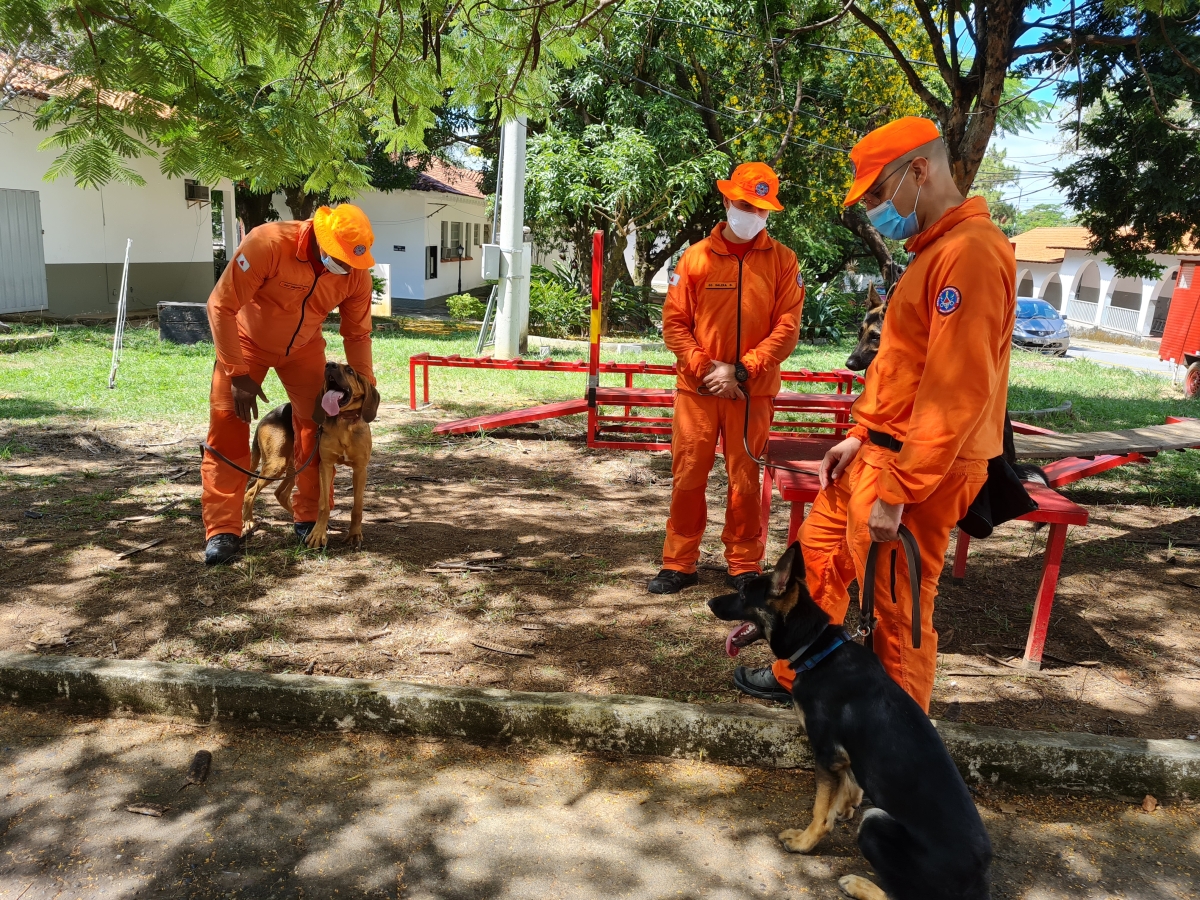 O conjunto de homem e cão recebe o nome de binômio e no CBMMG, os cães são treinados apenas pelo seu condutor. Este binômio, portanto, passa por treinamento. O condutor também se mune de conhecimento para uma melhor comunicação com os animais. “São eles que interpretam e treinam os cães, e em uma ocorrência essa interpretação pode ser o marco entre a vida e a morte.”, finalizou.