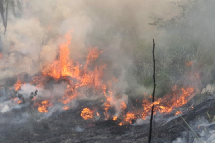 A área queimada apresenta espécies exóticas como gramínea braquiária e árvores de leucena, sendo tomadas as medidas de coroamento para a preservação das espécies arbóreas nativas, existentes no local.