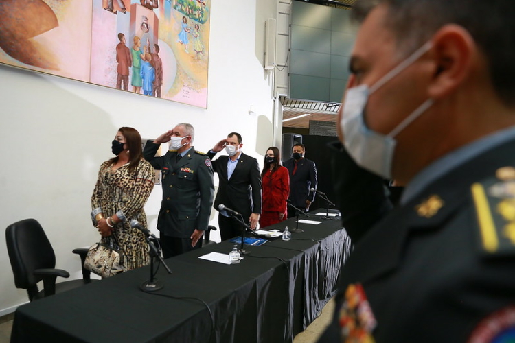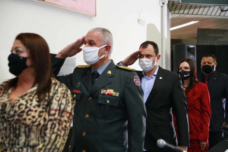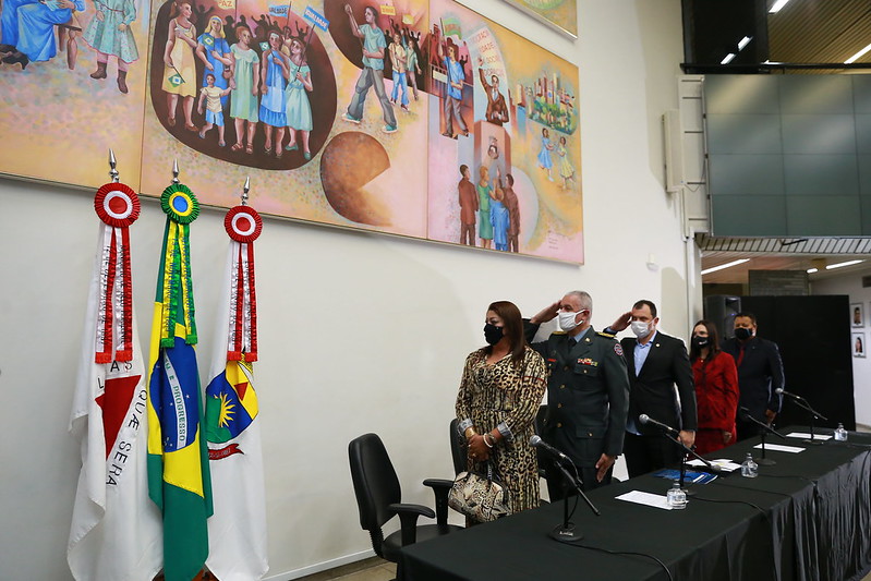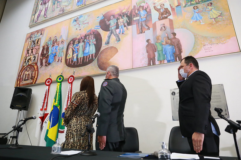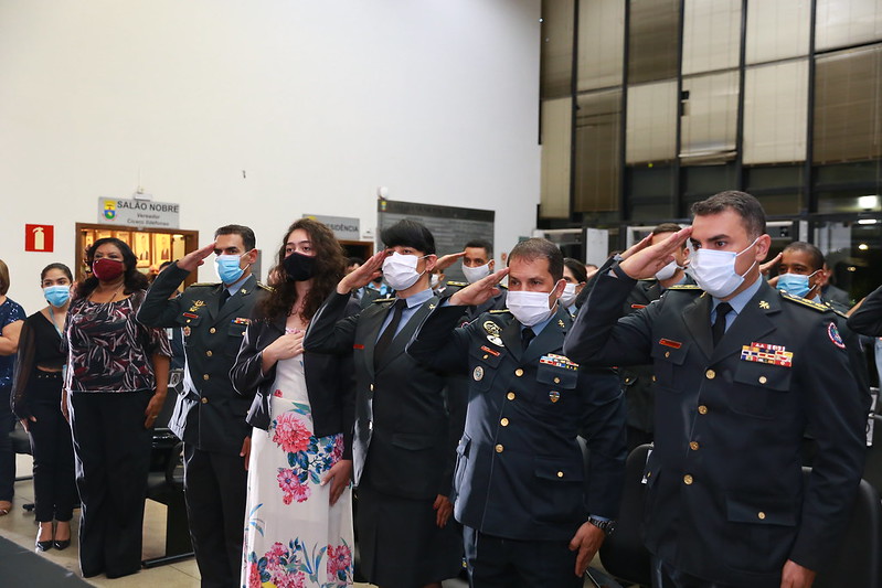 Estiveram presentes na solenidade, a Dra. Tatiana Telles e Koeler de Matos, secretária executiva de Segurança Pública, representando a Secretaria de Estado de Justiça e Segurança Pública (Sejusp) e o coronel veterano Antônio Damásio Soares.