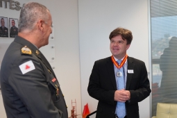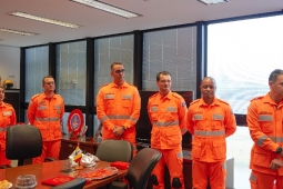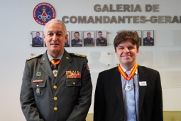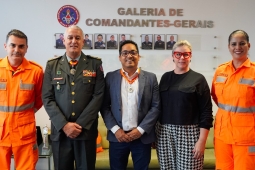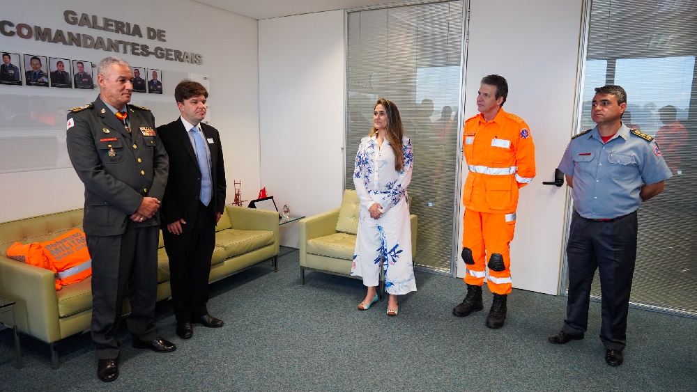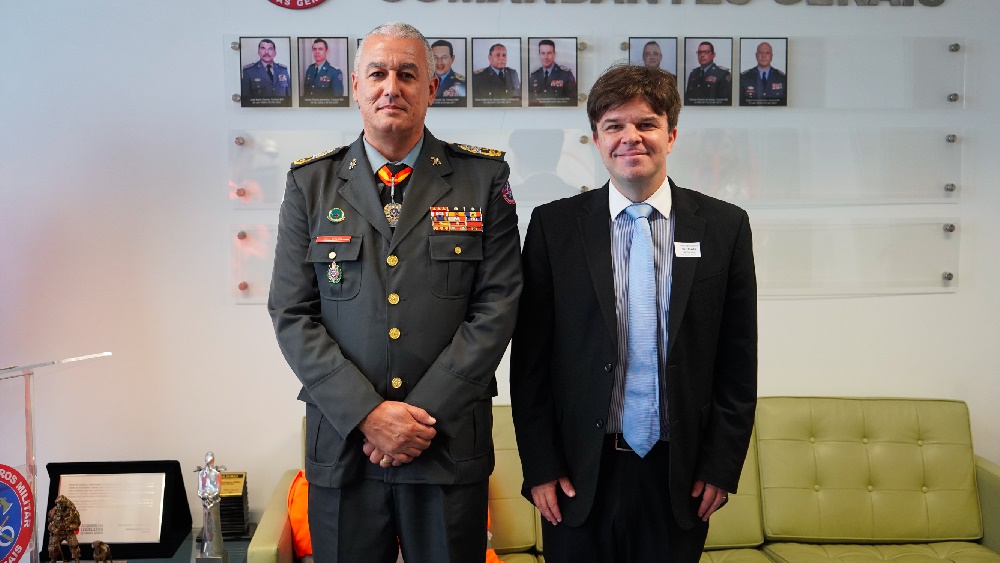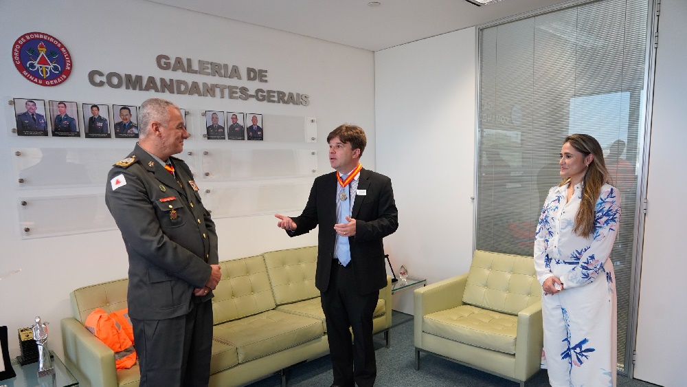 O comandante-geral do Corpo de Bombeiros Militar de Minas Gerais (CBMMG), coronel Erlon Dias do Nacimento Botelho, recebeu hoje (17), em seu gabinete, na Cidade Administrativa em Belo Horizonte, o promotor do Ministério Público Federal, Carlos Bruno Ferreira da Silva e o secretário de Estado de Educação, Igor Alvarenga para a entrega da Medalha Dom Pedro II.