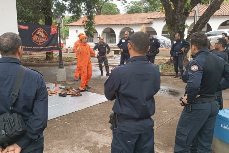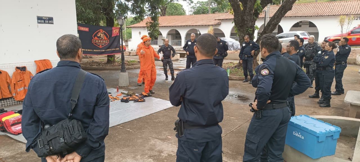 O treinamento começou com uma parte teórica, onde foram apresentadas as atividades de busca, resgate e salvamento realizadas pelos cães do CBMMG. Foram discutidas as atribuições legais do Corpo de Bombeiros, além das diferentes funções que os cães desempenham nas operações, como resgate de pessoas desaparecidas em áreas de mata, busca de restos mortais e localização de vítimas soterradas.