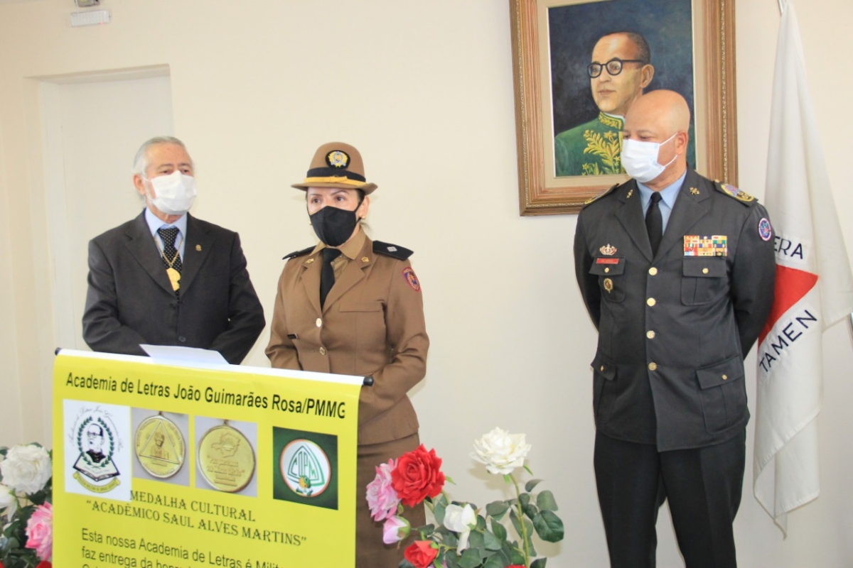 Na manhã desta terça-feira (05), o comandante-geral do Corpo de Bombeiros Militar de Minas Gerais (CBMMG), Coronel Edgard Estevo da Silva, compareceu ao espaço Silogeu para receber uma bela homenagem da Academia de Letras João Guimarães Rosa (ALJGR). O comandante-geral recebeu a medalha representando todos os militares da Corporação, que trabalha diuturnamente para salvar vidas e bens alheios. O espaço escolhido para realizar a cerimônia de entrega das homenagens, apresenta como significado“ local onde se reúnem associações literárias e/ou científicas”.