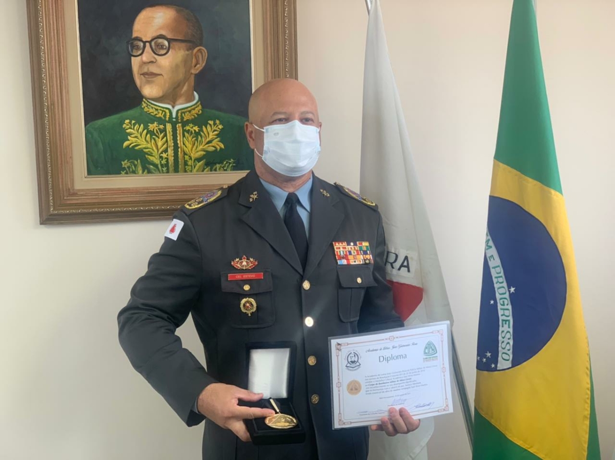 Durante a visita de cortesia ao Silogeu, do Exmo. Sr. comandante-geral, Edgard Estevo da Silva, e nessa oportunidade, procedeu-se à cerimônia de outorga da medalha e de recebimento da comenda.