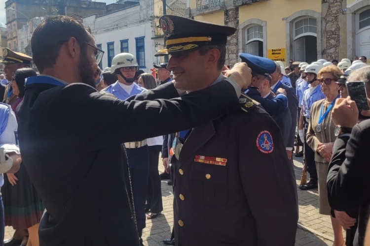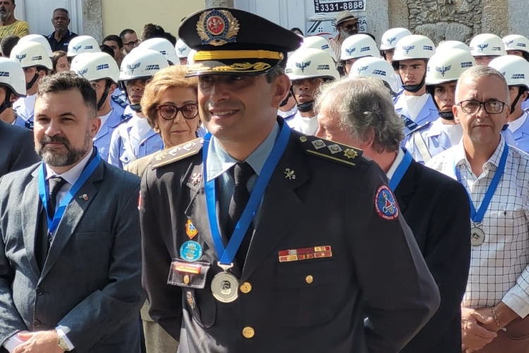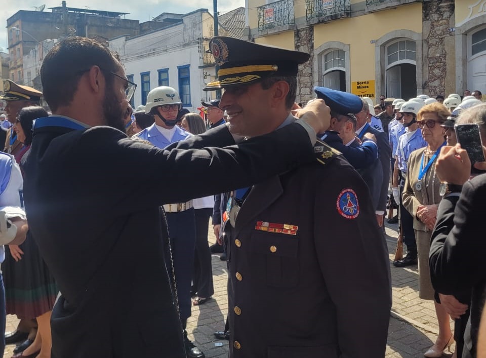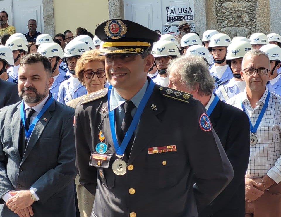 O Senhor Major Ronaldo Rosa de Lima, Comandante da 2ª Companhia Independente de Bombeiros Militar, recebeu das mãos do Senhor Prefeito Municipal, nesta quinta-feira (11), a Medalha do Dia da Vitória Expedicionário Álvaro Jabur. A Medalha é destinada a cidadãos que prestaram serviços relevantes ao Município