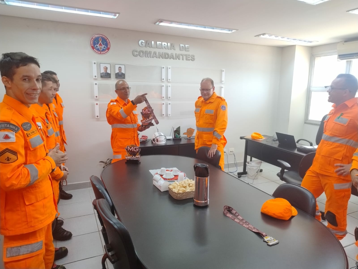 Na manhã última segunda-feira (30), o Comandante do 4º Comando Operacional de Bombeiros (4º COB), coronel Júlio César Tóffoli e o comandante do 7º Batalhão de Bombeiros Militar (7º BBM), tenente-coronel Josias Soares Júnior, receberam no gabinete do 4º COB a equipe campeã do 1º Desafio de Salvamento Veicular do CBMMG.