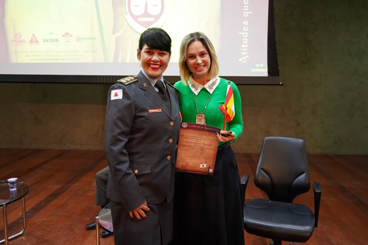 A Major BM Veterana Presidente da Fundação Salvar, Adriana Ferreira, ressaltou a importância e atuação destacada da Fundação em projetos sociais envolvendo o CBMMG, incluindo arrecadação de fundos e formação de parcerias.