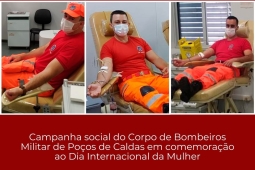 Na manhã desta sexta-feira (17), militares do 6º Comando Operacional de Bombeiros (6º COB) e da 1ª Companhia Independente de Bombeiros Militar (1ª Cia Ind) participaram de uma campanha social conjunta de doação de sangue em comemoração ao mês do Dia da Mulher. Os militares voluntários realizaram uma concentração no Hemocentro de Poços de Caldas, presentearam as servidoras da instituição e aproveitaram para realizar a doação de sangue.