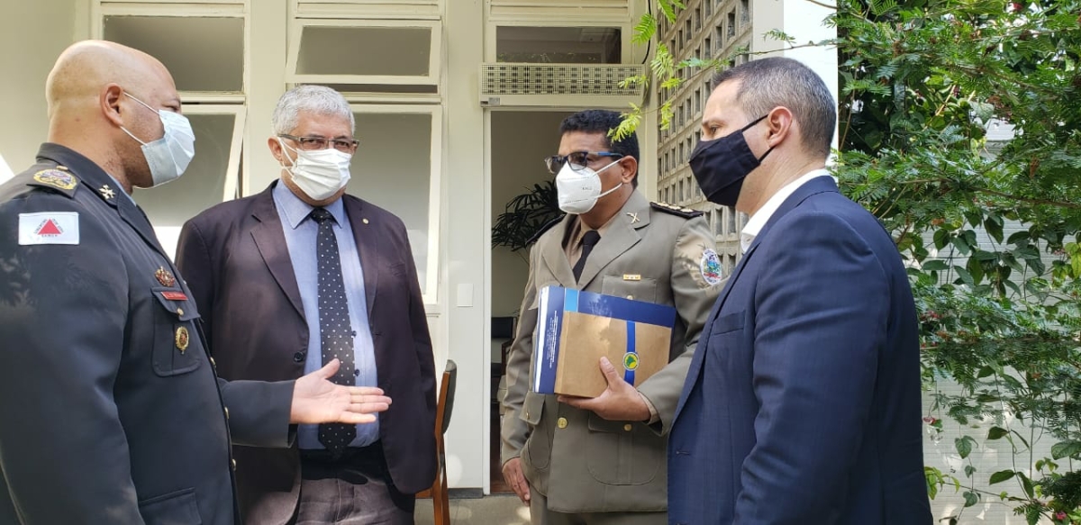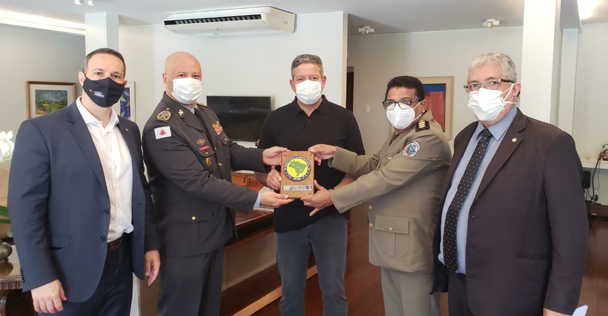 Nesta segunda-feira (17) o comandante-geral do Corpo de Bombeiros Militar de Minas Gerais (CBMMG), coronel Edgard Estevo da Silva, esteve reunido em Brasília com o presidente da Câmara dos Deputados, dep. Arthur Lira, para tratar de assuntos relevantes para os corpos de bombeiros de todo o Brasil. O coronel Estevo foi acompanhado pelos deputados federais capitão Derrite e subtenente Gonzaga e também do secretário executivo do Conselho Nacional dos Comandantes-Gerais (CNCG), Valterlins Dutra.